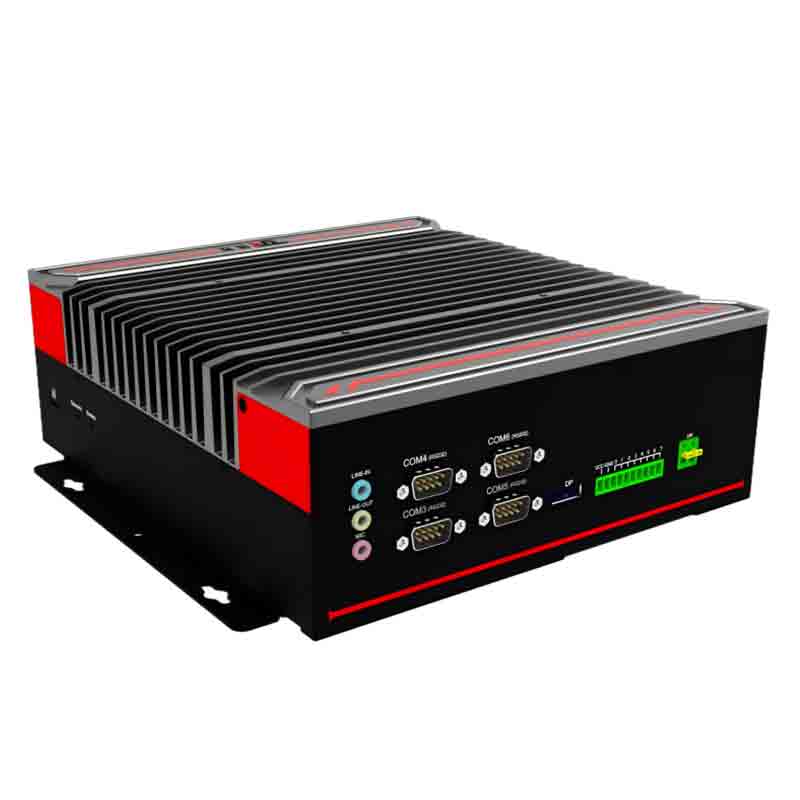 高性能 : 支持65W及以下12/13/14代LGA1700 Intel Core i7/i5/i3 系列處理器 穩定可靠 : 純工業設計,強勁解熱熱管與純銅一體化的優良散熱結構,全密封鋁合金箱體,大面積鋁鰭散熱,可實現橫向與豎向等多種放置的自然對流散熱,機箱可抗接觸式6KV強電磁干擾,DC12V-24V寬壓輸入接口豐富 : 4*LAN(Intel),6*COM,支持T-MOD模塊擴展,8*GPIO(4*USB2.0/2*RJ45/2*CAN/12DI+12DO三選一擴展),4*USB3.0+4*USB2.0 1*VGA,1*HDMI,1*DP,1*遠程開關,1*一鍵還原,1*一鍵備份,1*SIM槽, 1*LINE IN,1*LINE OUT,1*MIC,1*2.5寸硬盤位,1*M.2(KEY-M,2280,PCIEx4 支持SATA) , 1*M.2( KEY-B,3042/3052, PCIE+USB3.0支 持 4G/5G) , 1*MINI PCIE( 全 高 ,PCIE+USB2.0信號,支持WiFi/BT)外觀設計 :鋁合金一體成型,結構緊湊,MiNi小巧,工藝精細,科技時尚